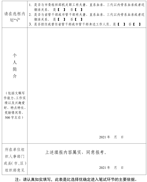 附件:市委組織部2021年度公開考調(diào)工作人員報(bào)名表